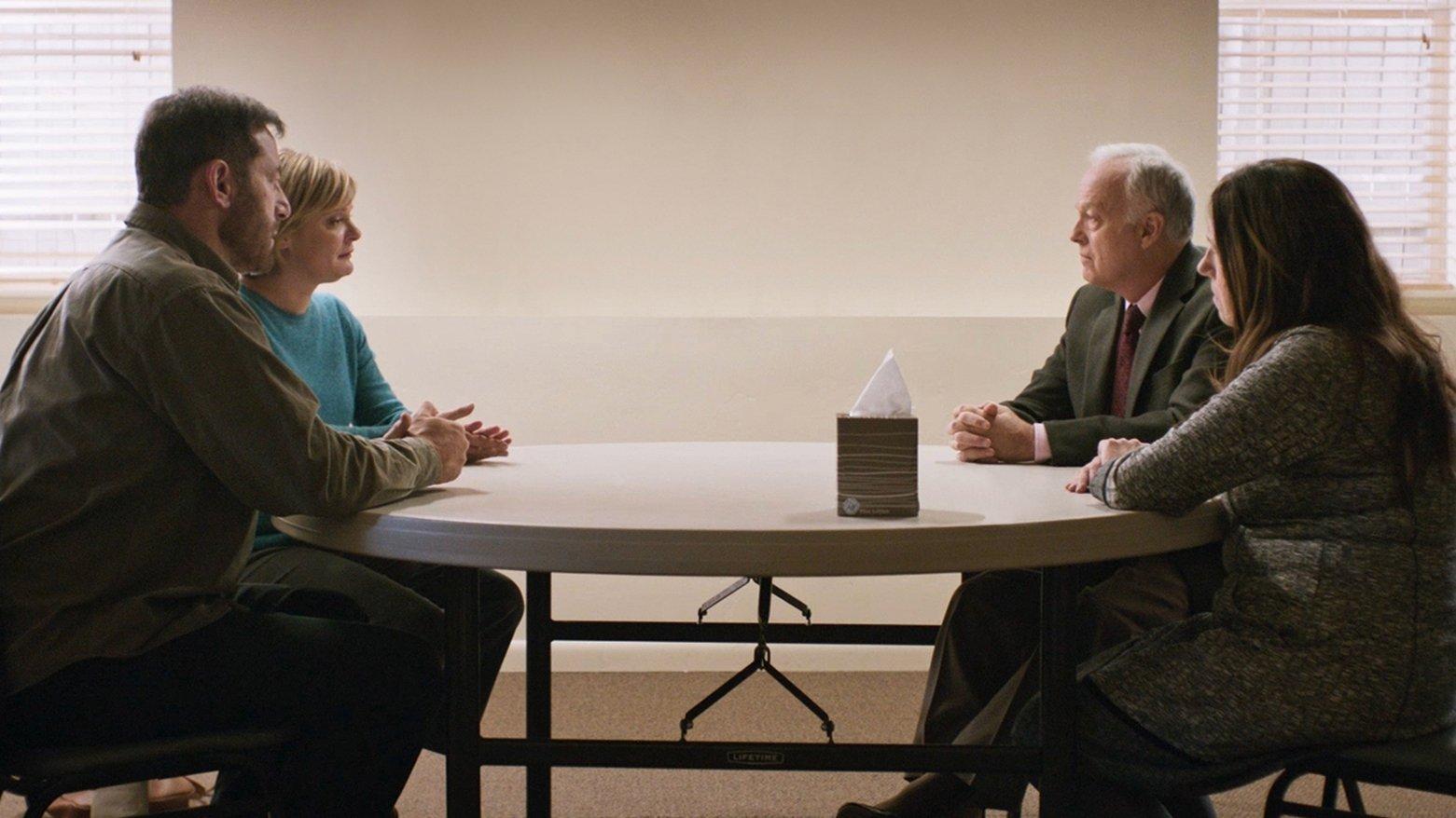 MassAños después de que el hijo de Richard (Reed Birney) y Linda (Ann Dowd) causase una enorme tragedia, Jay (Jason Isaacs), y Gail (Martha Plimpton) están por fin dispuestos a hablar en un intento por tratar de seguir adelante con sus vidas.